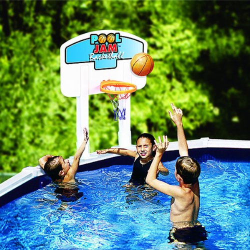 Blue Wave Pool Jam V-Ball/B-Ball Combo This great game combo combines your two favorite pool games - volleyball and basketball. Both games feature Hardbody™ stands that will withstand the rigors of pool fun. The set includes two realistic game balls. (volleyball not shown) Both games are quick and easy to assemble. Convert from basketball to volleyball in just seconds with the Insta-snap™ backboard design. Have a blast this summer with this great game combo. Choose from Above Ground or In-Ground pool models. Read more...