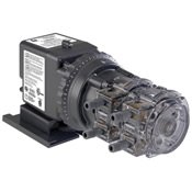 Heavy Duty Construction: Stenner tube and head parts are made with extra-heavy thickness for durability and long service life. Recommended interval for replacing the pumping tube (a spare is shipped with the pump) is six months, but operation for one year without rupture is not unusual. The heavy duty construction prevents damage from freezing. The shaded-pole gear motor has thermal overload protection against burnout. Smooth Consistent Output: Stenner's patented mechanical feed rate control virtually eliminates the problem of output pulsation or "slugging" by eliminating long "off" periods. The percentage dial ring is easily adjustable for the desired percent of maximum output. Wide Variety of Applications: Since it can develop up to 25" of vacuum lift, and is capable of handling liquids, slurries, and solutions of up to 50% solids by volume, the Stenner peristaltic pump can be used in virtually any type of chemical feed application. Typical applications include potable water plants, wastewater treatment facilities, cooling towers, water wells, swimming pools, irrigation water treatment, and many other industrial uses. Since the peristaltic pump will not siphon, installation of an anti-siphon valve is unnecessary. Without ball check valves to clog, the pump can be used in situations where it must operate unattended for long periods of time. Serviceability: The pump's unique "snap-on" design allows disassembly without tools. There are no diaphragms, o-rings or ball check valves to require service, and no lubrication is ever needed. Corrosion is eliminated, since there is no chemical-to-metal contact. Since so few parts are in contact with chemicals, there is no need for a wide variety of wet ends. Read more...