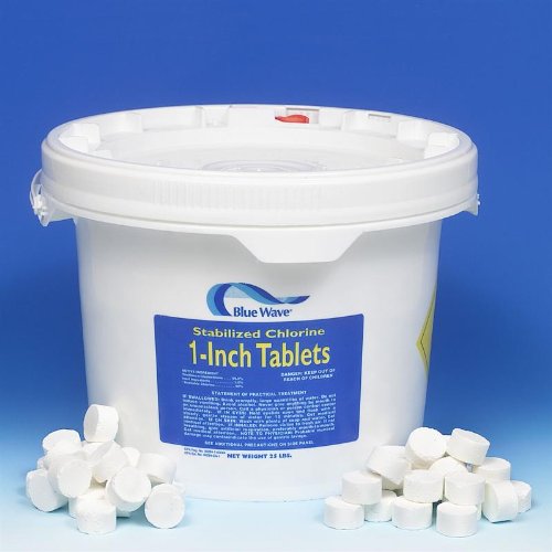 Blue Wave Tri-Chlor 1" Tablets COMPARE TO BIOGUARD, SUN, GUARDEX,AND PACE. Powerful 90% available chlorine! Features the same outstanding quality as our 3" tablets, but is faster dissolving for more immediate results. Great for use in floaters, automatic chlorinators, and skimmer baskets. Each tab weighs 0.5 oz. 99% Trichloro-S-Triazinetrione. Available sizes: 10 lbs., 25 lbs., 50 lbs., 100 lbs. Read more...